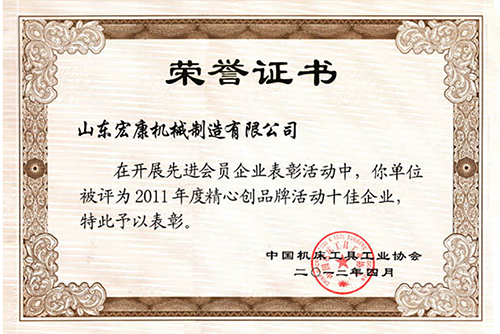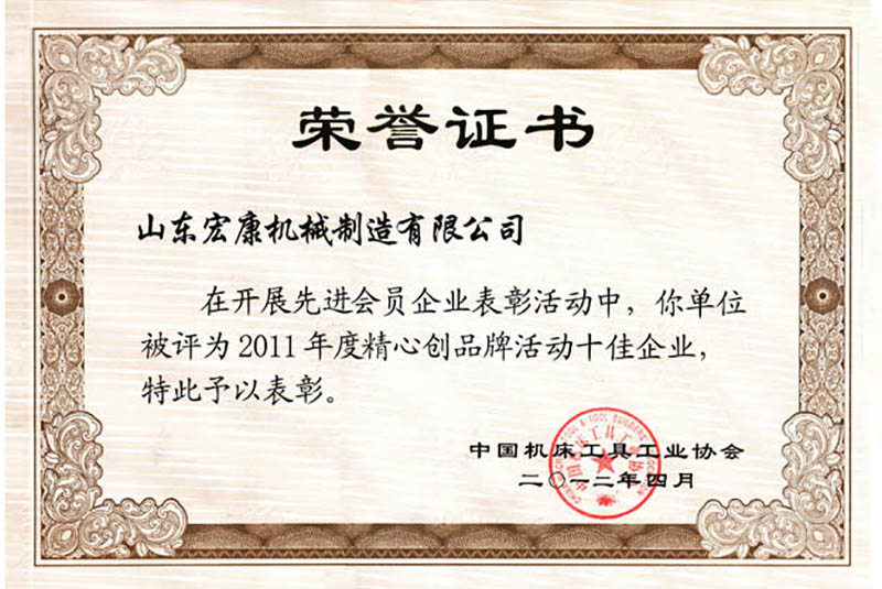 中國機床工具工業(yè)協(xié)會榮譽證書
