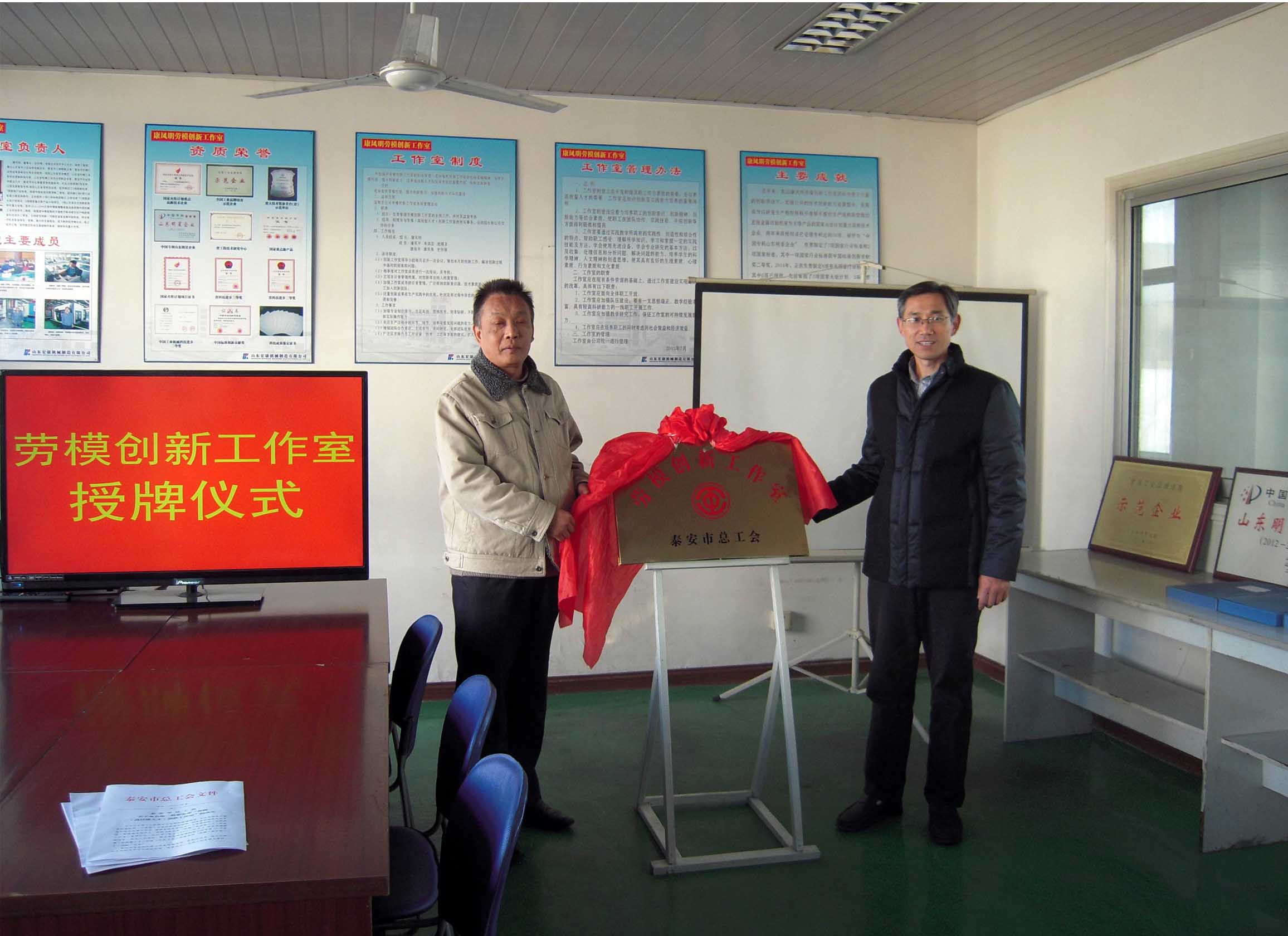 根據(jù)泰會(huì)(2014)50號(hào)《泰安市總工會(huì)關(guān)于命名第二批泰安市“勞模(高技能人才)創(chuàng)新工作室”的決定》文件精神,“康鳳明勞模創(chuàng)新工作室”被命名為第二批泰安市“勞模創(chuàng)新工作室”,這是繼今年5月份“康鳳明勞模創(chuàng)新工作室”被岱岳區(qū)總工會(huì)首批命名后取得的又一殊榮。12月5日,市總工會(huì)生產(chǎn)保護(hù)部部長(zhǎng)劉軍、岱岳區(qū)總工會(huì)常務(wù)副主席李福江等市區(qū)部門(mén)領(lǐng)導(dǎo)來(lái)集團(tuán)公司舉行了揭牌、授牌、掛牌儀式。副總經(jīng)理、工會(huì)主席聶化濤等領(lǐng)導(dǎo)參加了活動(dòng)儀式。