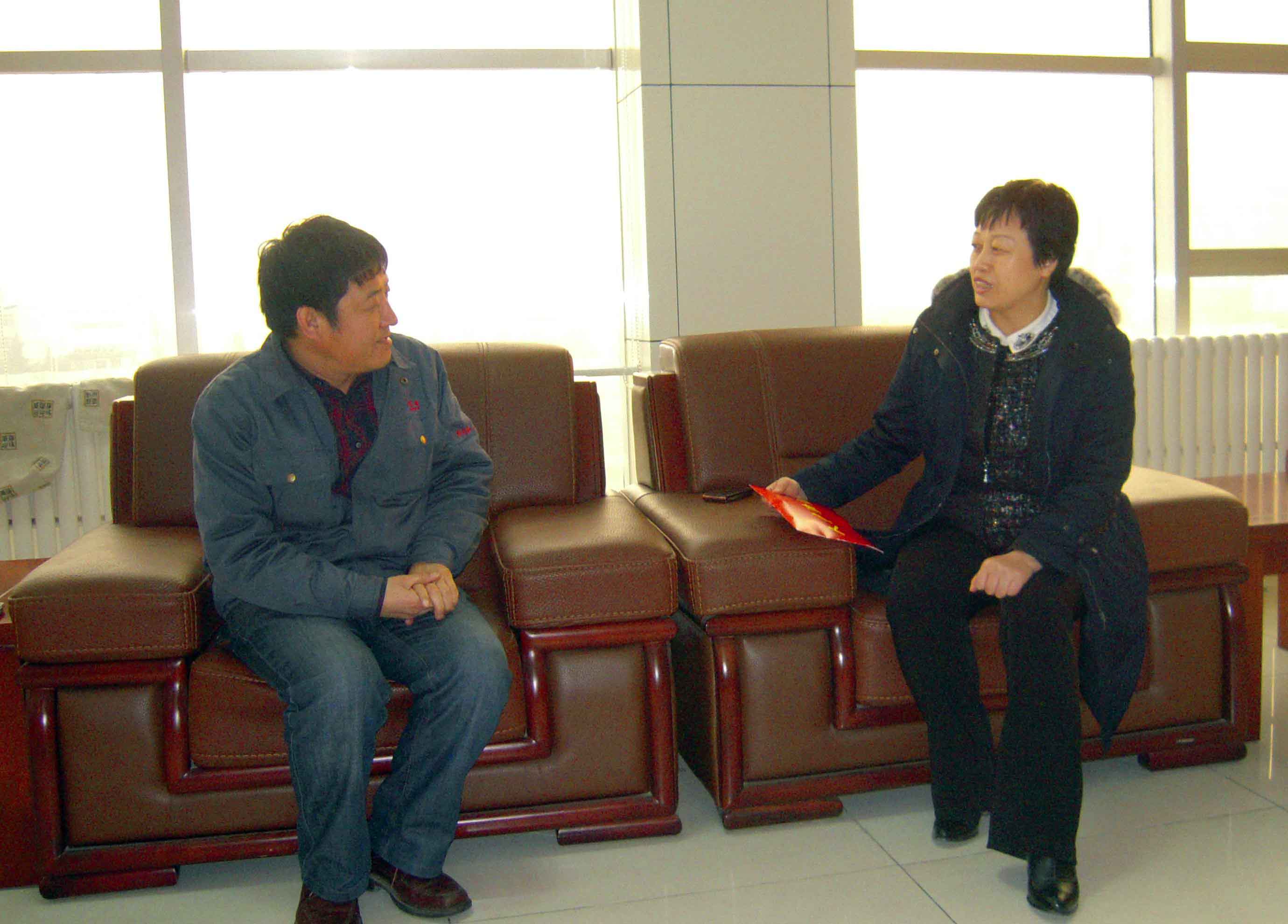 2月11日,區(qū)委常委、組織部長蔡麗霞在泰山青春創(chuàng)業(yè)園黨工委領(lǐng)導陪同下,來集團公司走訪慰問泰安市專業(yè)技術(shù)拔尖人才、副總經(jīng)理朱洪臣,向他表示問候,并發(fā)放了慰問金。